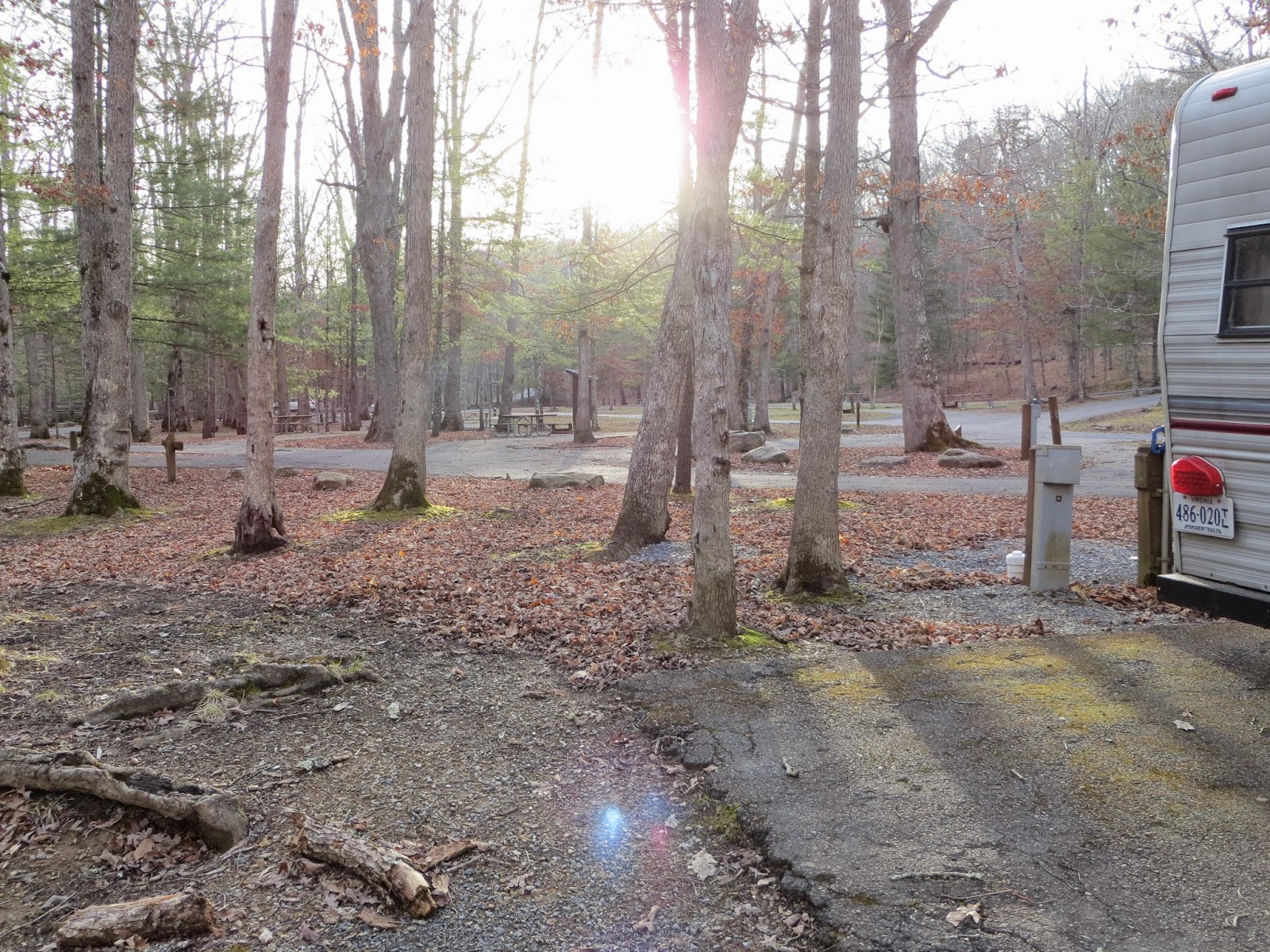 A plug for this campground: It is very clean, well kept, family inclined, has a big lake with more walking trails than even I could use. I recommend it highly. It has some wifi but not so much to upload many pictures and only in certain areas - but come on, you are out in the woods. It really is a great park. The fee is about 45 bucks a night though so bring your wallet. A bargain if you have a lot of kids, not so much if it is just one or two people. There is wifi in the 'beach' area that is a sandy place around one small part of the lake - good place for kids.