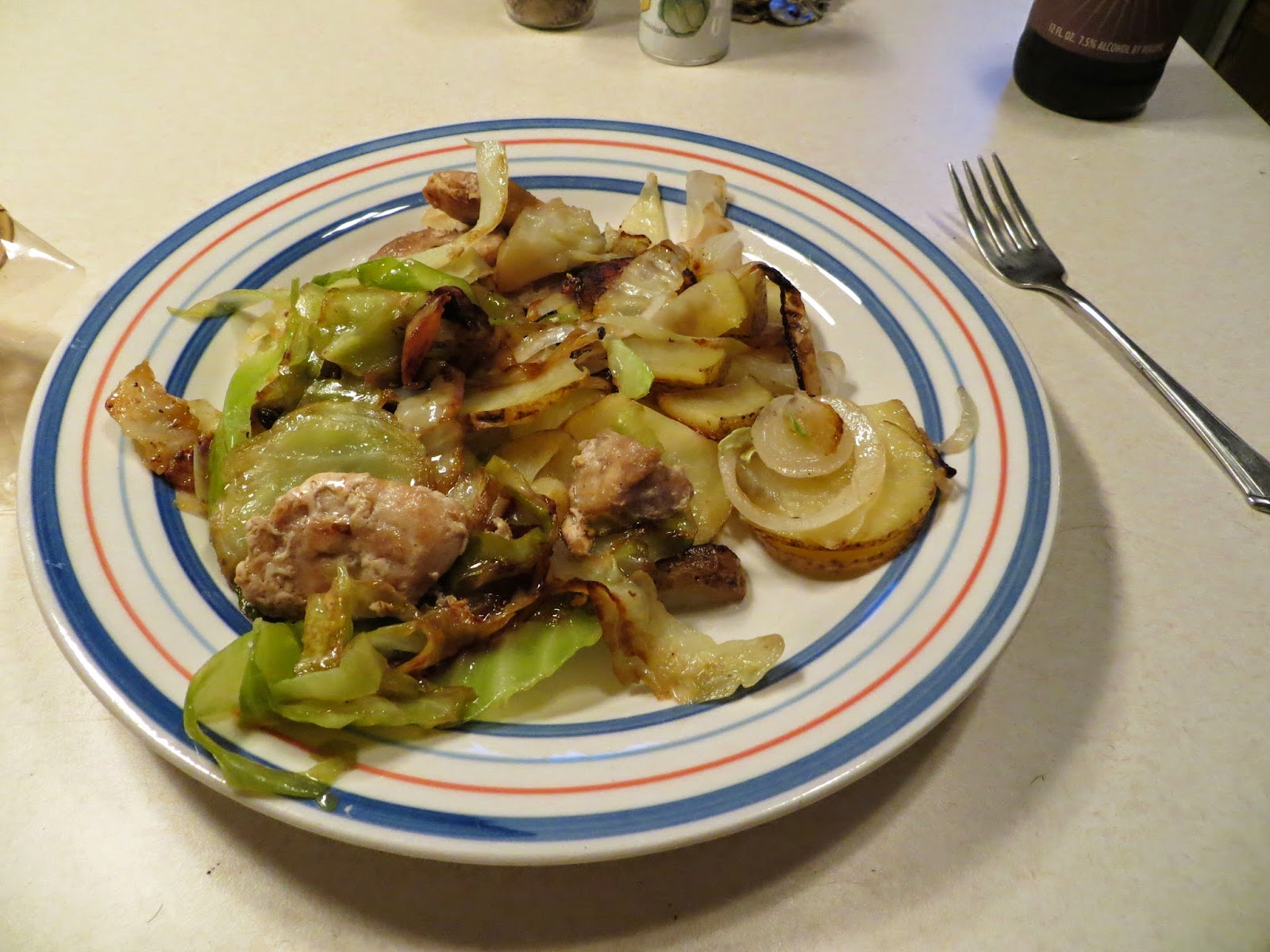 40s and after cooking a dinner of chicken fillets with cabbage,