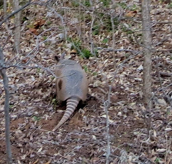 We saw a rabbit and several armadillos - I had never seen one in the wild and the dog had never seen one...until now. The chase was on but not for far or for long. I like creatures that eat bugs.