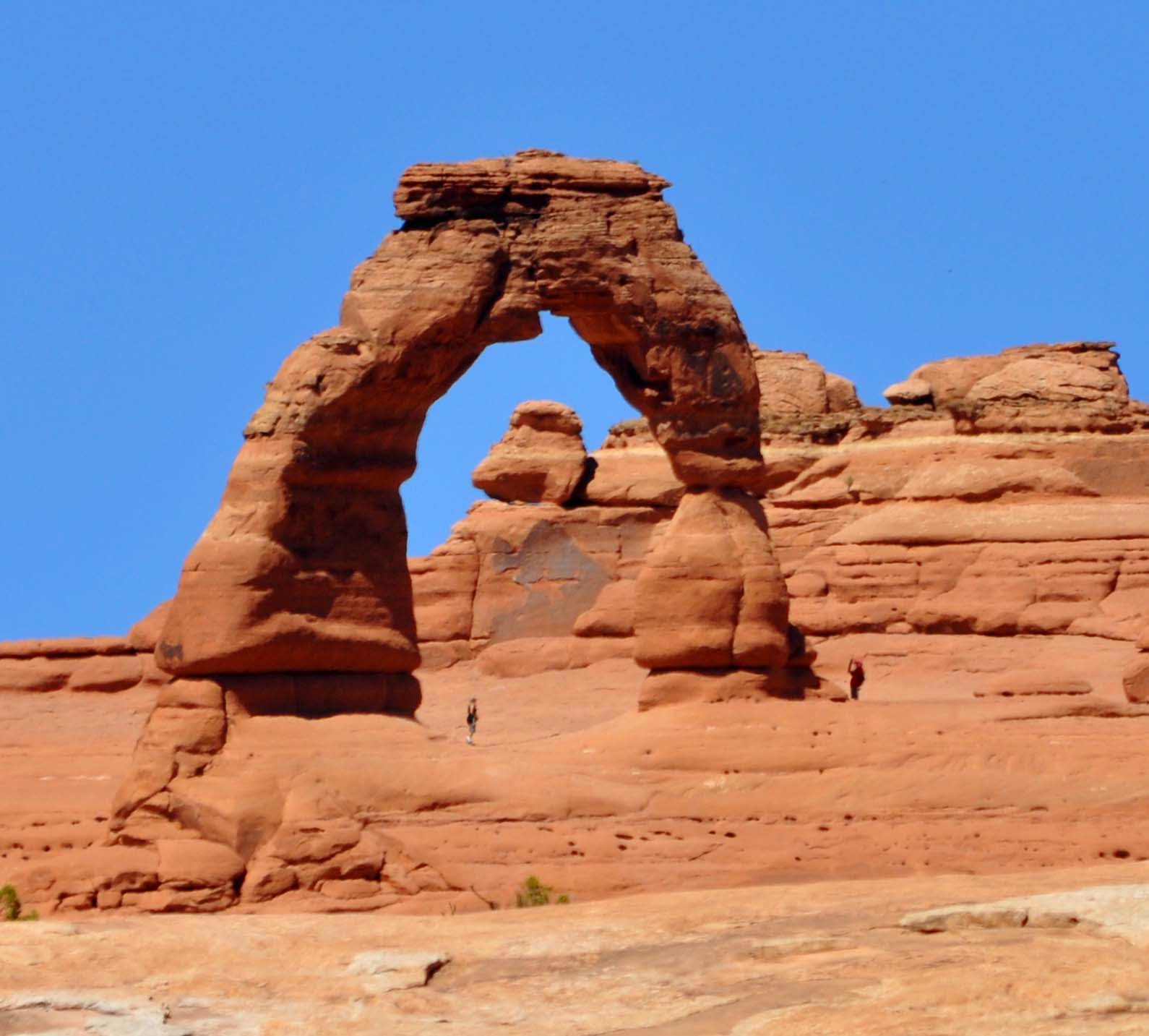 And the one most photographed, delicate arch. Park rules clearly state no climbing on the named arches. People were climbing all over them. If the park is supposed to protect the arches, they were clearly not doing their job but then again I am sure they are understaffed due to budget restrictions. People are really stupid in that we saw one chubby man standing on top of one of the arches that is not very stable and had a sign saying so. The arch was a simple meeting of two stones and had been crumbling but the man climbed up it anyway - it was easily accessed. Not bright.