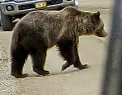 It was on the way to Mammoth Hot Springs we saw a bear - we saw only one. We had heard all the stories of bears in the parks and expected them to be as common as bison - no they are not but when you see one, wow. There is always a lag between "BEAR!!" and when one can find and be able to use ones camera. There was road work going on, traffic was paused and this fella came up over the bank and crossed just behind the truck. I got to see his face but not capture it.
