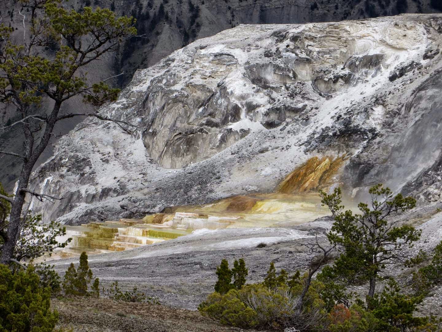 At the north end of the park is Mammoth Hot Springs - do not miss this! This part is geologically different than any other part of the park. This small part has limestone and is a "not well understood" part of the park. At this time it is thought that while all of the park was created by volcanic actions, this part has undergone some sort of infusion from gurgling limestone infused water - but it is unclear where the limestone water is coming from. However, it makes for more interesting displays that are very different from all the rest.